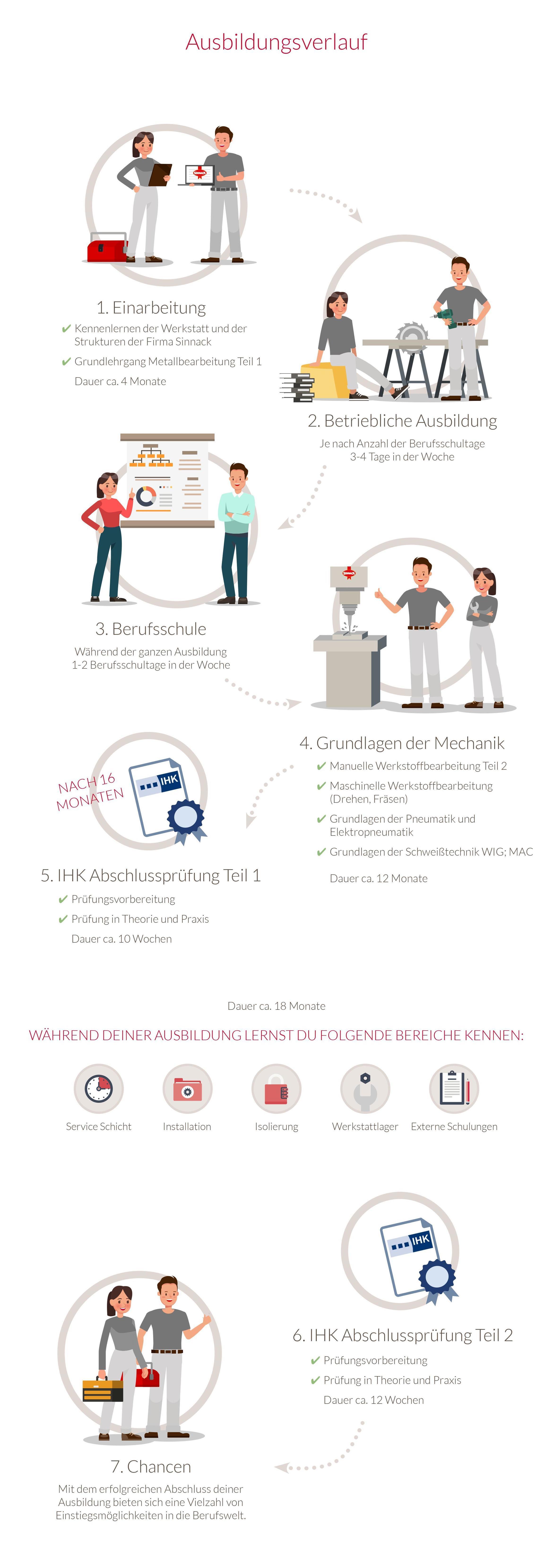 Während der Ausbildung zum Industriemechaniker (m/w/d) lernst du, Werkstücke zusammenzubauen, setzt schon fertige Maschinenbauteile zusammen und programmierst grundlegende Arbeitsanweisungen in die Elektronik der Maschinen ein, damit diese funktionieren. Des Weiteren arbeitest du mit modernen Messinstrumenten und führst Wartungs- und Reparaturarbeiten durch.