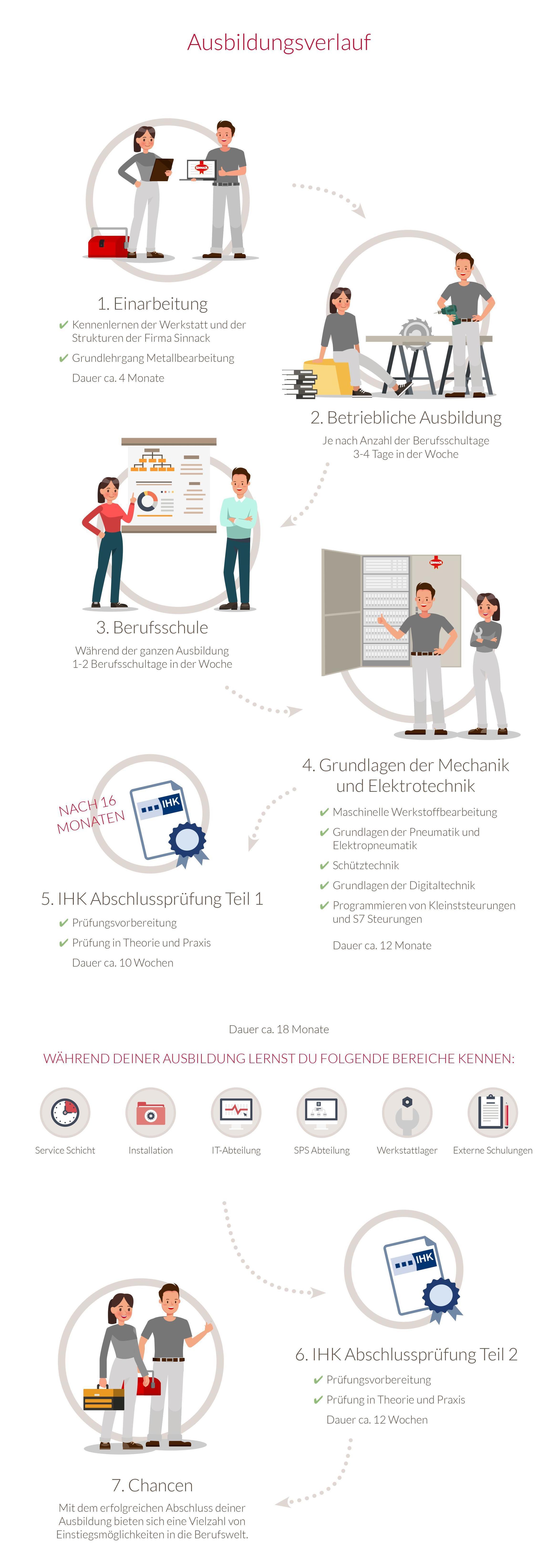 Während der Ausbildung zum Mechatroniker (m/w/d) lernst du, die Grundlagen der Metallbearbeitung und der Elektrotechnik. Weiterhin erlernst du das Messen und Prüfen elektrischer Größen und das Programmieren (SPS) von Anlagen. Sicherheitsrichtlinien und Qualitätsmanagement sind ein weiterer wichtiger Bestandteil deiner Ausbildung.